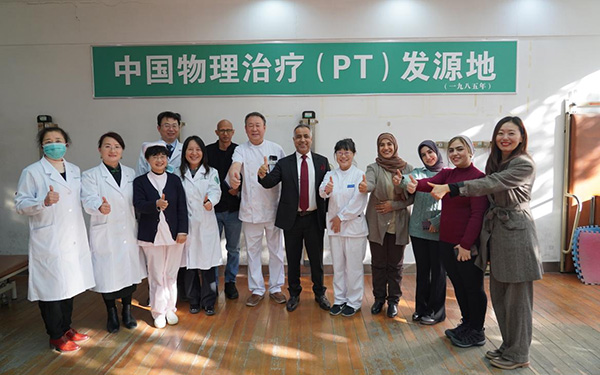 纳赛尔·布塞义迪大使阁下一行6人首先参观了中康东院区与西院区相关康复治疗科室,与康复一线专业人员进行了友好交流。随后,吴世彩书记等相关人员在中康西院区欢迎纳赛尔·布塞义迪大使阁下,双方进行了友好会谈。